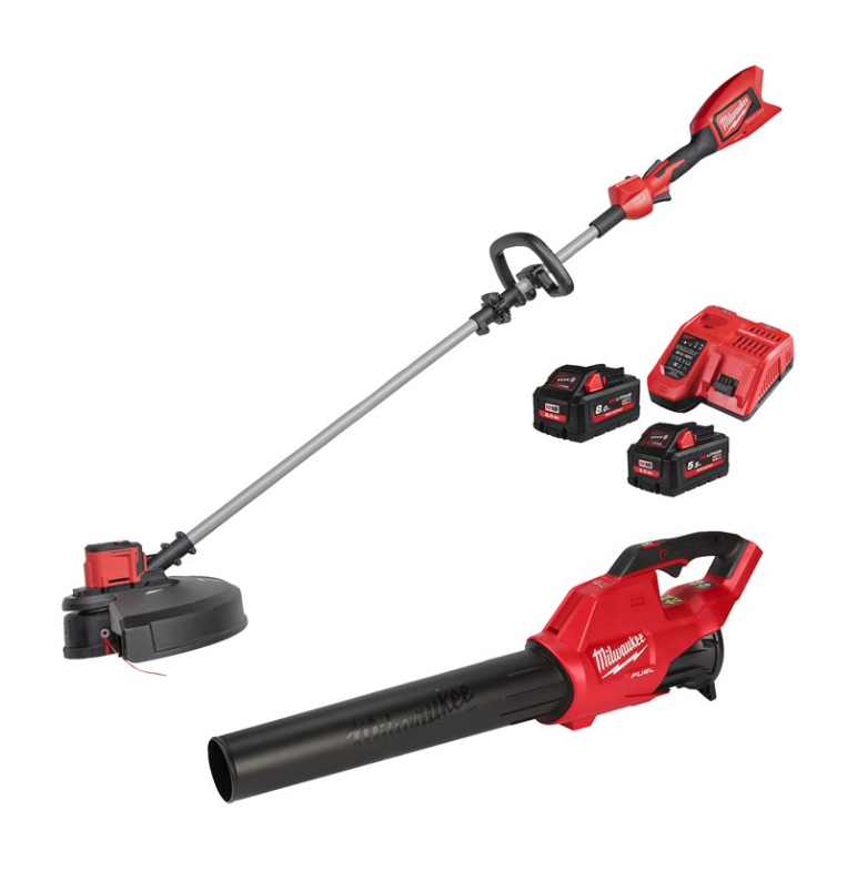 INCLUI: Aparador de Relva (M18 BLLT) + Soprador (M18 FBL) + 1 Bateria 8.0 ah M18 + 1 Bateria 5.5 ah M18 + Carregador Rápido Multivoltagem M12-M18