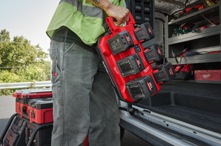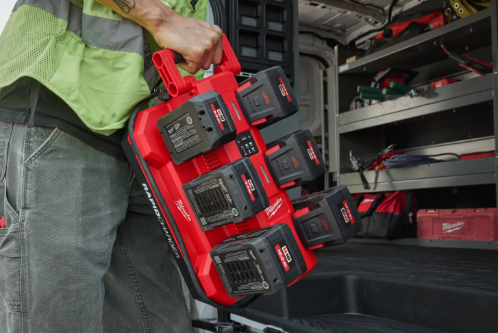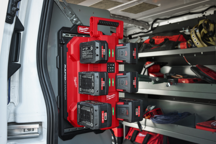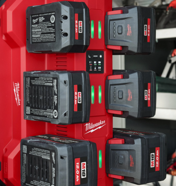 - Carregue até 72 baterias M18™ numa única tomada com o modo de carregamento noturno com 12 carregadores