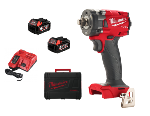 INCLUI: Chave de impacto + 2 Baterias 5.0ah M18 + Carregador Rápido Multivoltagem M12-M18 + Box