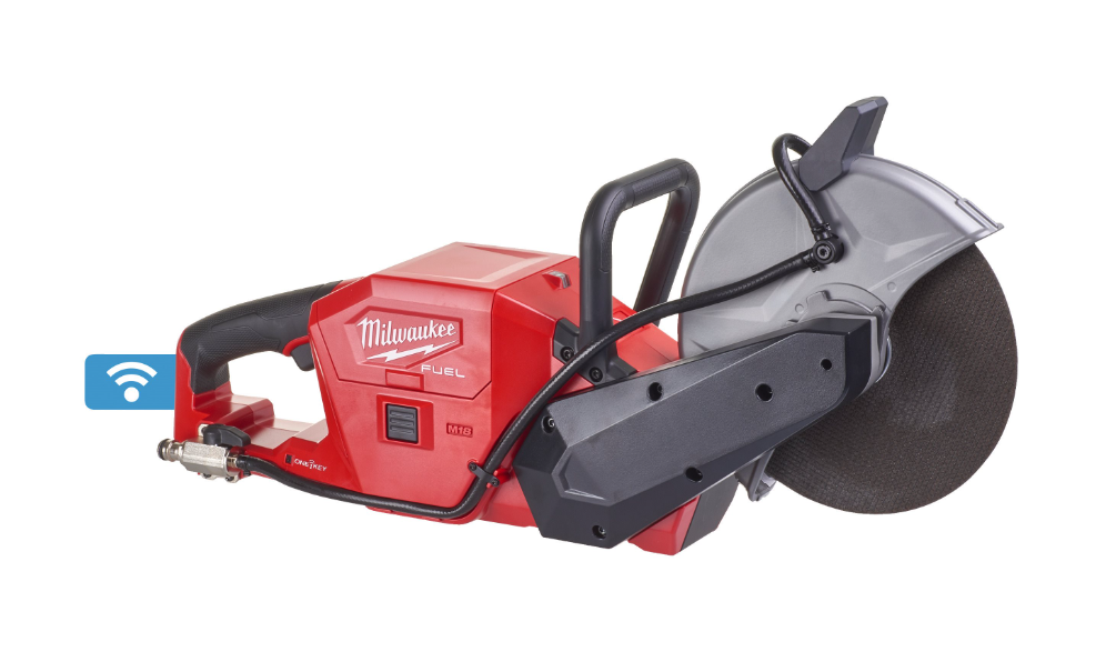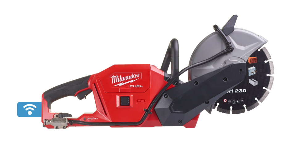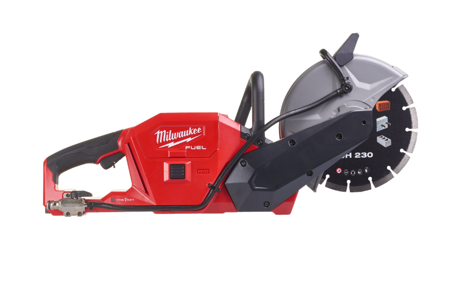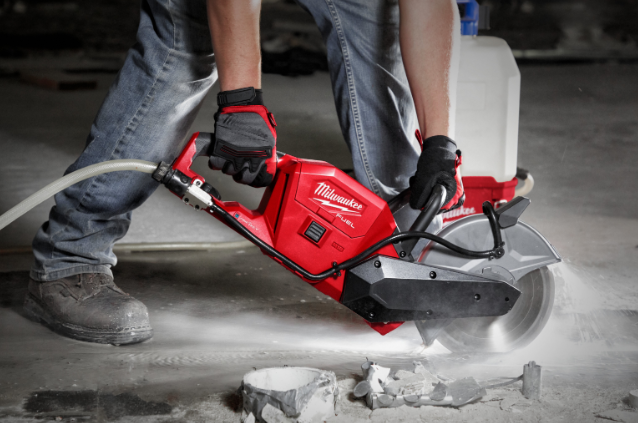 - A primeira cortadora de betão a bateria de 18V de 230mm, que funciona com 50% menos peso que uma cortadora a gasolina