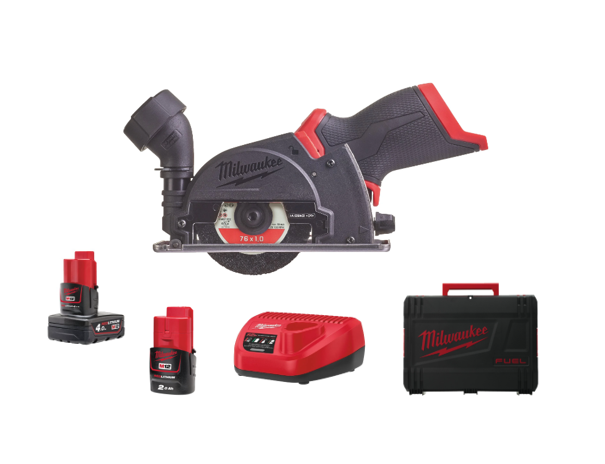 INCLUI: Cortadora + Bateria 4.0 ah M12 + Bateria 2.0 ah M12 + Carregador M12 + Box