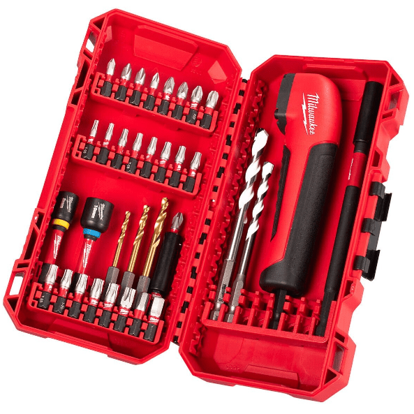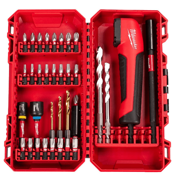 INCLUI: 25 bits (1 x PH1, 3 x PH2, 1 x PZ1, 3 x PZ2, 1 x PZ3, 2 x T10, 2 x T15, 3 x T20, 3 x T25, 2 x T30, 1 x T40 , 1 x Hex 5 mm, 1 x Hex 6 mm) + 3 Brocas de Titânio RedHex (3-4-5 mm) + 2 Chaves de Caixa (8-10 mm) + 2 Extensão Magnética (50-150 mm) + 2 Brocas Multimaterial (6-8 mm) + 1 Adaptador Angular