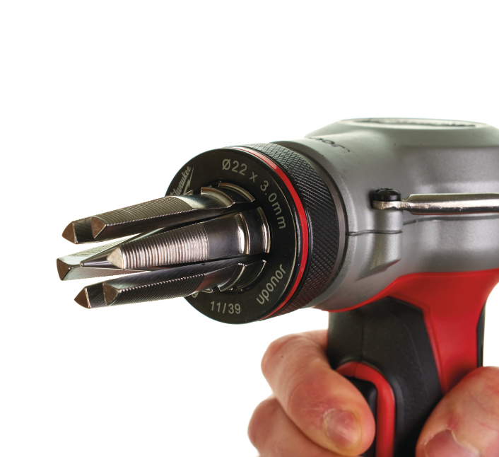 - Cabeça auto-rotativa para diâmetros de 12mm a 32mm (6 bar) garante uma expansão homogénea do tubo usando apenas 1 mão