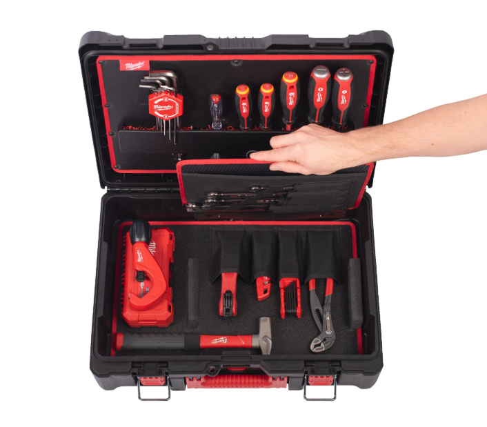 - Configuração ilimitada com espaço extra para ferramentas manuais com inserções e divisórias múltiplas