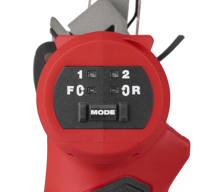 • O modo reverso permite que o usuário escolha a orientação da correia para gerenciar a direção das faíscas/cavacos