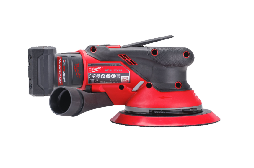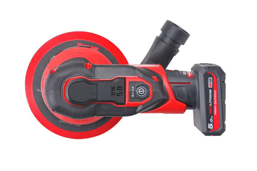 Inclui: Lixadora + 2 Baterias 5.0 ah M12 + Carregador M12 + Box + Adaptador universal para aspirar à esquerda ou à direita
