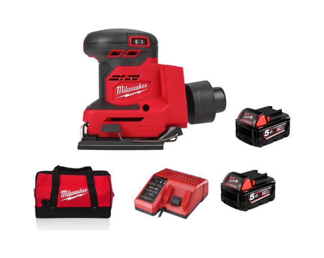 INCLUI: Lixadora + 2 Baterias 5.0 ah M18 + Carregador Multivoltagem M12-M18 + Bolsa de Transporte
