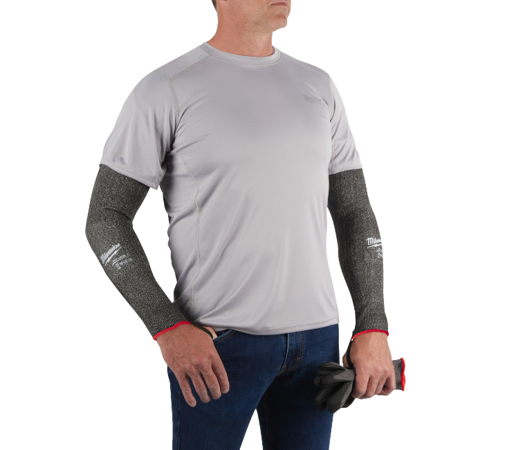 - Faixa elástica com pontos antiderrapantes nos bíceps e elástico no punho para manter as mangas no lugar e evitar a sua flacidez.