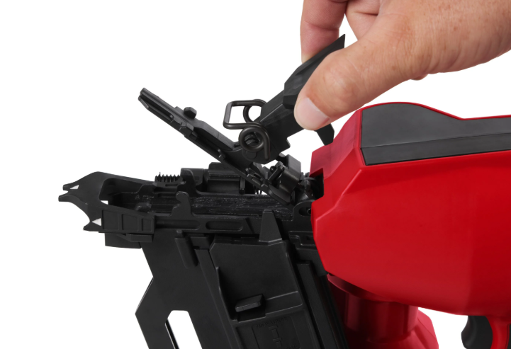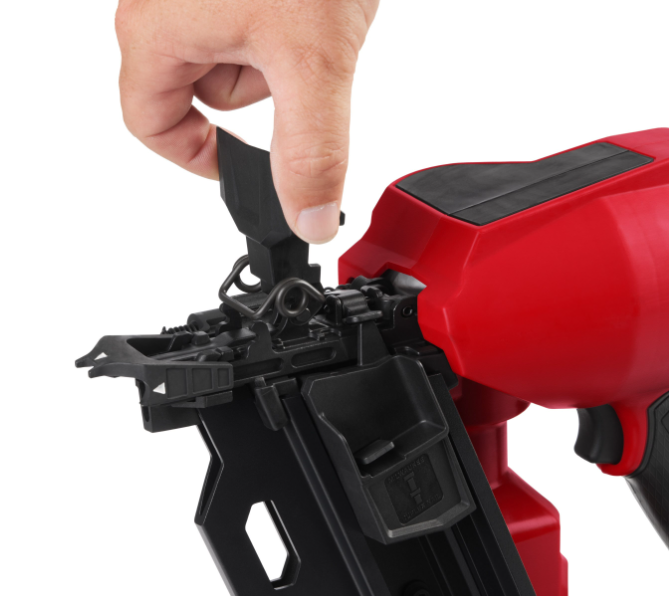 • O bloqueio de disparo a seco impede o acionamento da ferramenta quando não houver mais pregos no carregador.