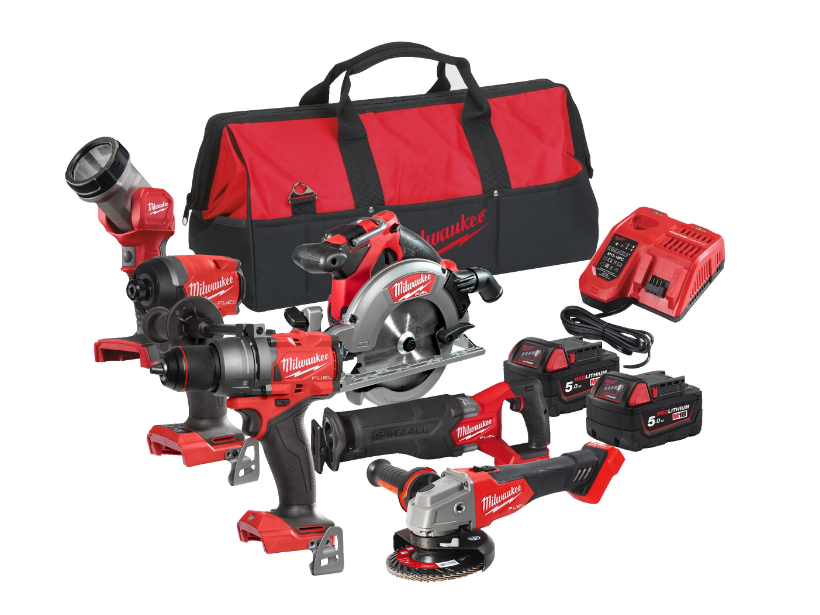 INCLUI: Berbequim com Percussão M18 (M18 FPD3) + Aparafusadora de Impacto ¼” Hex M18 (M18 FID3) + Serra Circular 55mm M18 (M18 CCS55) + Serra de Sabre Sawzall M18 (M18 FSZ) + Rebarbadora de Acabamentos 125mm com Interruptor de Bloqueio M18 (M18 FSAG125X) + Lanterna LED M18 (M18 TLED) + 2 Baterias 5.0 ah M18 + Carregador Rápido Multivoltagem M12-M18 + Bolsa de Transporte