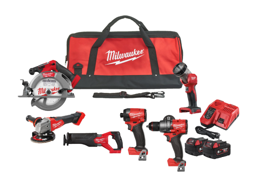 Inclui: Berbequim com Percussão M18 (M18 FPD3) + Aparafusadora de Impacto ¼” Hex M18 (M18 FID3) + Serra Circular 55mm M18 (M18 FCS552) + Serra de Sabre Sawzall M18 (M18 FSZ) + Rebarbadora de Acabamentos 125mm com Interruptor de Bloqueio M18 (M18 FSAG125X) + Lanterna LED M18 (M18 TLED) + 2 Baterias 5.0 ah M18 + Carregador Rápido Multivoltagem M12-M18 + Bolsa de Transporte