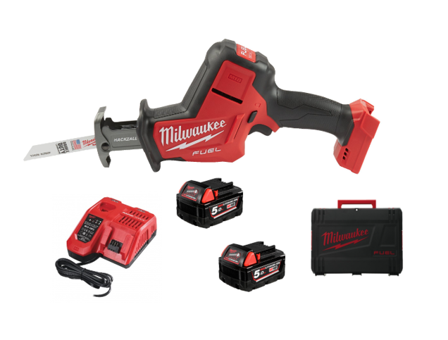 INCLUI: Serra de Sabre + 2 Baterias 5.0 ah M18 + Carregador Rápido Multivoltagem M12-M18 + Box