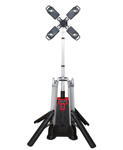 • Graças ao mastro motorizado, a torre de iluminação pode ser instalada em menos de 10 segundos. O mastro é extensível até 3,10 metros e suporta ventos de até 55 km/h.