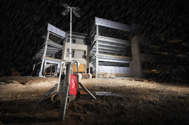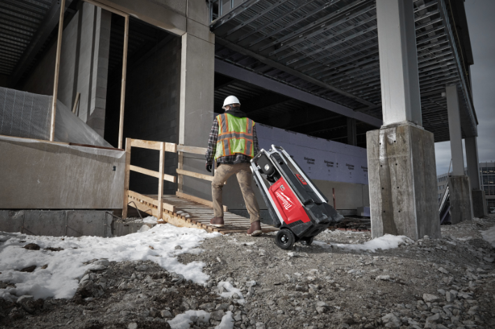 • Com um peso leve de 48 kg e duas grandes rodas todo-o-terreno, esta torre de iluminação é fácil de transportar em terrenos irregulares e molhados de obras, com o mínimo esforço.